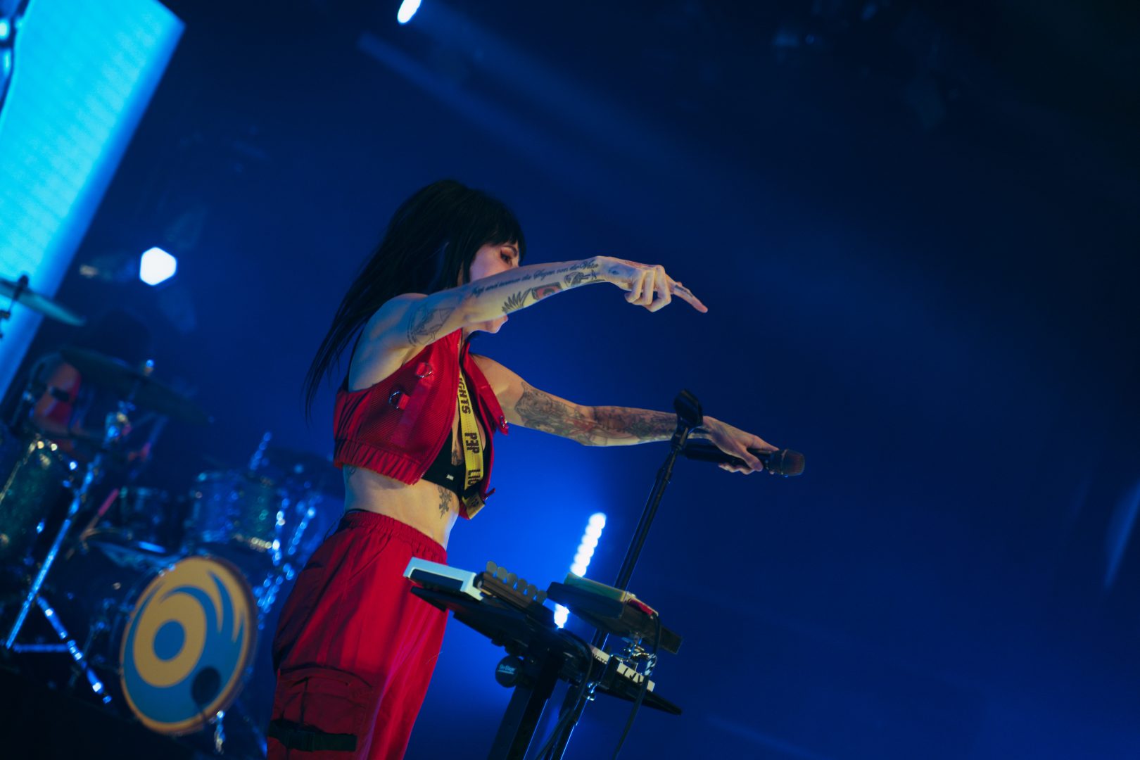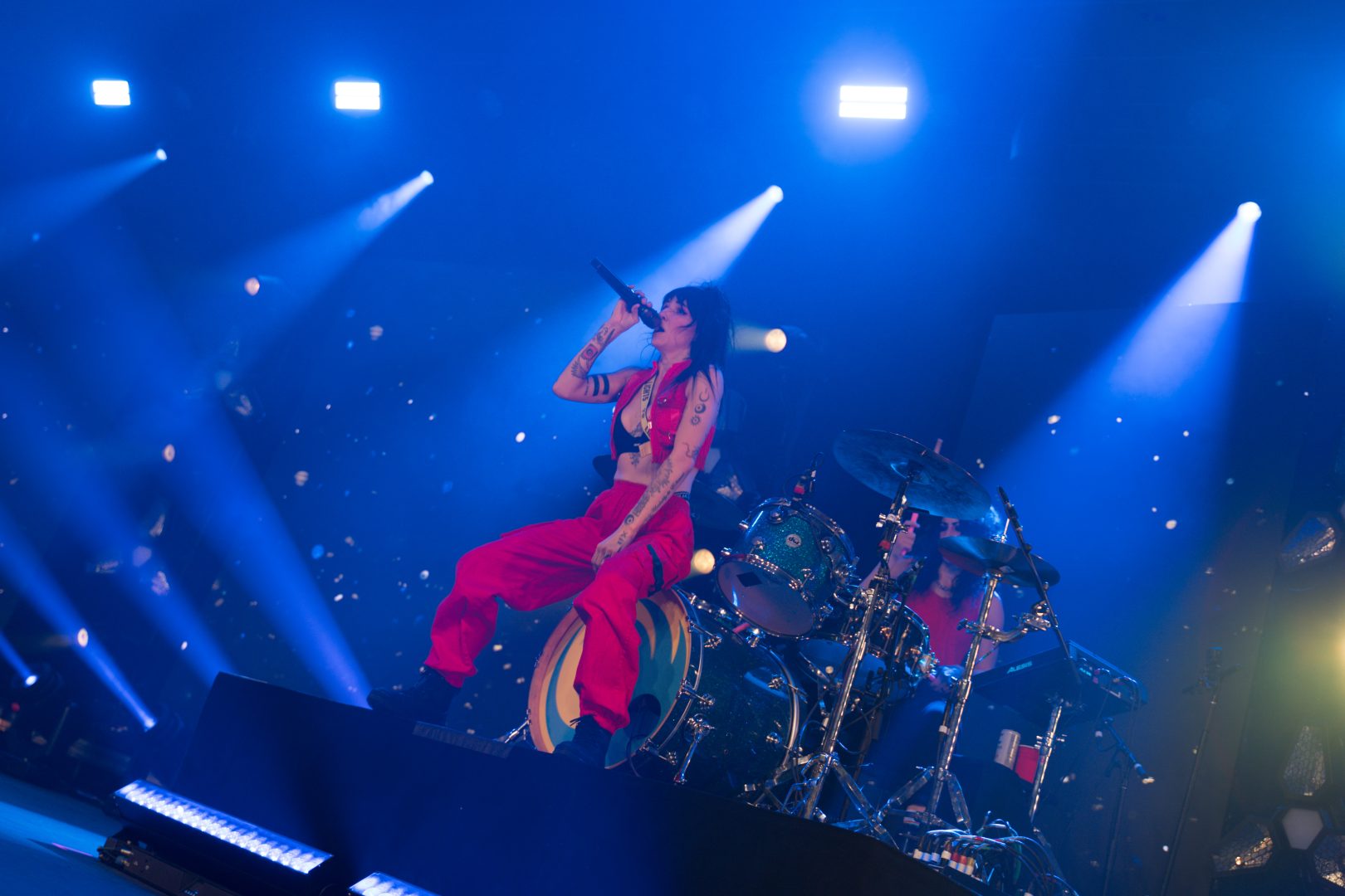 A really cool moment happened at the end of Felix Cartal’s set as they surprised the crowd as Lights took to the stage to perform the last song with Felix. The two performed the new song called “Ride” that the pair recently recorded together so it was a treat for the fans to get a taste of Lights earlier then expected. The photo above shows the singer sitting on the DJ table as they sang and also shared a toast with the crowd before she left the stage. It would not be long before Lights would take the stage once again, Felix Cartal closed out his set and the venue went into intermission as usual during this time to allow for the building to reach maximum capacity which it surely would. Finally, Lights and her band would take to the stage to the smash hit single mentioned earlier in the article “Prodigal Daughter” which brought huge amount of energy to the audience in front of her.