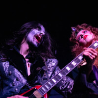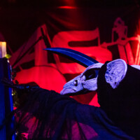 A cast of characters known as the Count (guitarist, Franco Vitorre), the All-Seeing Druid (drummer, Josh Strmic), the Plague Doctor (bassist, Ronnie Lanzilotta III) and the Rat Queen (lead singer and guitarist, Riley Pinkerton) make up the band, who take audiences on a journey every night in order to protect the book known as The Bestiary. The book protects The Realm and all its creatures, with Castle Rat swearing to protect the book. No story is complete without a villain, our villain is known as the Rat Reaperess – death incarnate, attempting to steal the book and all of its mystical powers. The show ends in an epic slow mo battle between the Rat Queen and Rat Reaperess. Spoiler alert: the Rat Queen does win, but the pageantry of the performance is something to behold.