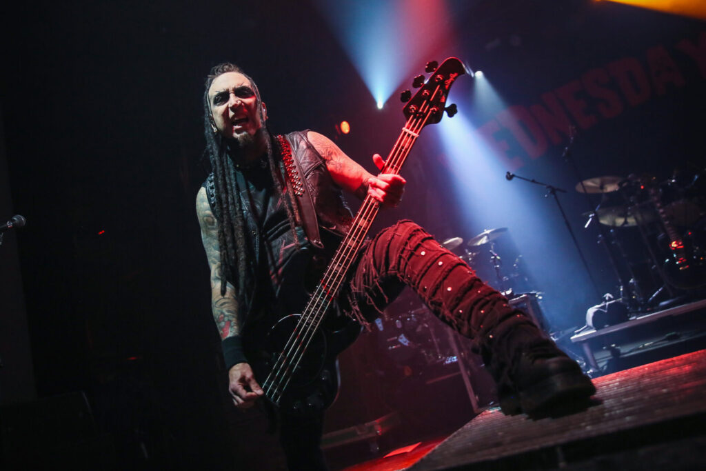 Toronto’s Danforth Music Hall buzzed with anticipation as fans escaped the bitter cold left behind by the city’s record-breaking snowfall. Inside, the packed venue felt like a refuge from the frigid streets, warm and ready for a night of theatrics from three bands determined to melt whatever winter had left behind. Wednesday 13 opened the evening with a slow, deliberate entrance, the front man appearing last to a surge of cheers. Touring Mid Death Crisis, the band split their set between the new record, their debut Transylvania 90210, and a handful of covers. Their performance was tight and commanding, drums rumbling through the hall, the front man prowling the risers, and one guitarist repeatedly stealing the spotlight as each solo plunged the stage into darkness except for a single focused beam. The crowd devoured every moment. The Birthday Massacre followed next with their signature blend of dark charm and heartfelt energy. Members emerged one by one, the bassist laying down a euphoric pulse as synths swelled for “Nightshift”. The sold-out room moved as a single mass, not moshing, but swaying and headbanging in approval. The keyboardist’s wild, animated presence, leaping across and atop the instrument, contrasted beautifully with front woman Sara’s fluid, expressive vocals. Heart-shaped hands filled the air, mirrored by the band as they fed off the crowd’s warmth.