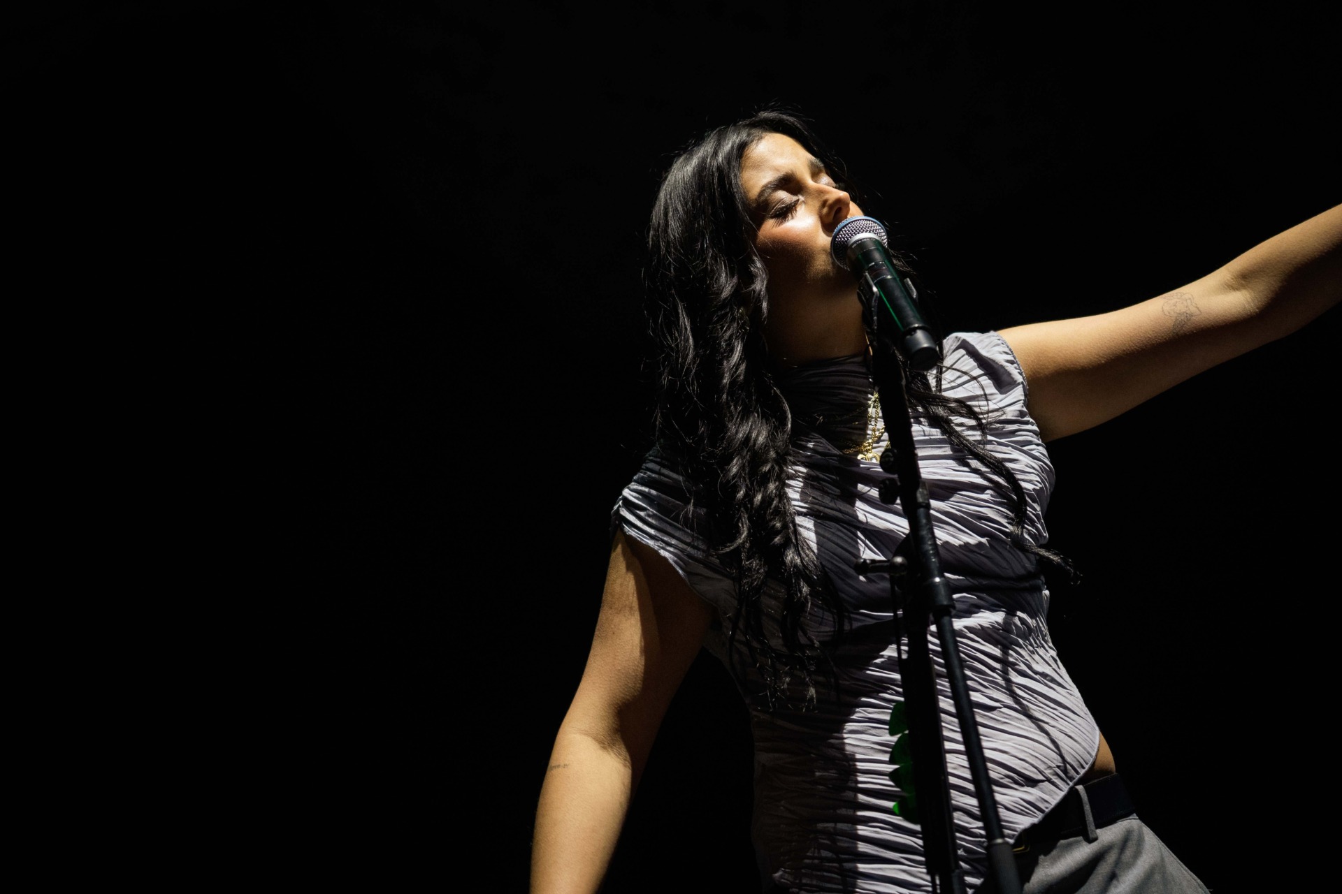 The evening’s most memorable fan interaction would come shortly after however, with Lewis calling a young girl from the front row up on stage to gift her his back-up guitar. Despite the melancholic nature of much of his work, Lewis demonstrated the collective joy of live music with a triumphant show that will be well-remembered by his London fan base. Supporting Dean Lewis was rising singer-songwriter Sofia Camara, who warmed up the crowd with an energetic performance of impassioned pop anthems. Camara was well-received by Lewis’ fans, who quickly picked up her lyrics during a moment of audience interaction and sang their hearts out to a cover of Chappell Roan’s ‘Good Luck, Babe!’. For those that didn’t get a chance to attend the concerts in London, you can still check out our exclusive photo gallery just below featuring both artists at the Eventim Apollo on February 7th. Also, make sure to follow Dean Lewis on social media @DeanLewis for all future updates on the singer!