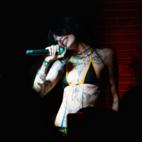 Fans packed the room at Toronto’s Adelaide Hall this past Tuesday May 13th for DeathByRomy’s first ever headlining show in the city. The Hollywood Forever tour supports the brand-new full-length album of the same name. A blend between nu-metal, pop-punk, trap beats and hauntingly captivating vocals that coats over heavy tones, quoting that this album is “a love letter to LA, but at times it reads more like hate mail”. Dark aesthetics aside, Romy got a little personal with the crowd saying that she wouldn’t be making music had it not been from watching Hannah Montana at her best friend’s house when she was younger. Not sure what the correlation between being a Disney kid turned into a dark, edgy adult is, but as someone who was a fan and now a self-proclaimed emo in their mid twenties – I get it. Toronto artist Jules is Dead was in the audience and was invited up on stage to join Romy in singing No Mercy, a nice little surprise for fans of both artists. Artist Heffy started the night off and when I walked in I honestly thought I had entered a night club with the bass hitting my chest. His music topples the line between 80’s goth, modern alternative and again – club sounds.