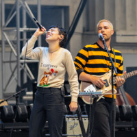 British alt rockers Divorce came to Berkeley, CA’s Greek Theater supporting Mumford & Sons on June the 10th. Opening the show in style, the group played a solid set, including tunes from their debut album Drive to Goldenhammer, released back in March of this year. Formed in Nottingham, England, the band was pleased to state that it was their first time in Berkeley, with lead singer and bassist Tiger Cohen-Towell stating that they had In-n-Out burgers, which “oh my god” is “the best burger in the world definitely”. Their song “Antarctica” was shared by Marcus Mumford and was a driver for Divorce to join Mumford & Sons on tour. Between tunes like “All My Freaks” and “Gears”, band members made the crowd laugh, peppering intros to songs with jokes and references to their band name, at one point referring to themselves as the most enjoyable divorce the crowd will experience. Divorce appeared genuinely excited to be playing the popular Bay Area venue, stating that this is one of the biggest show’s they’ve played and thanking their manager Ryan for representing them from the start.