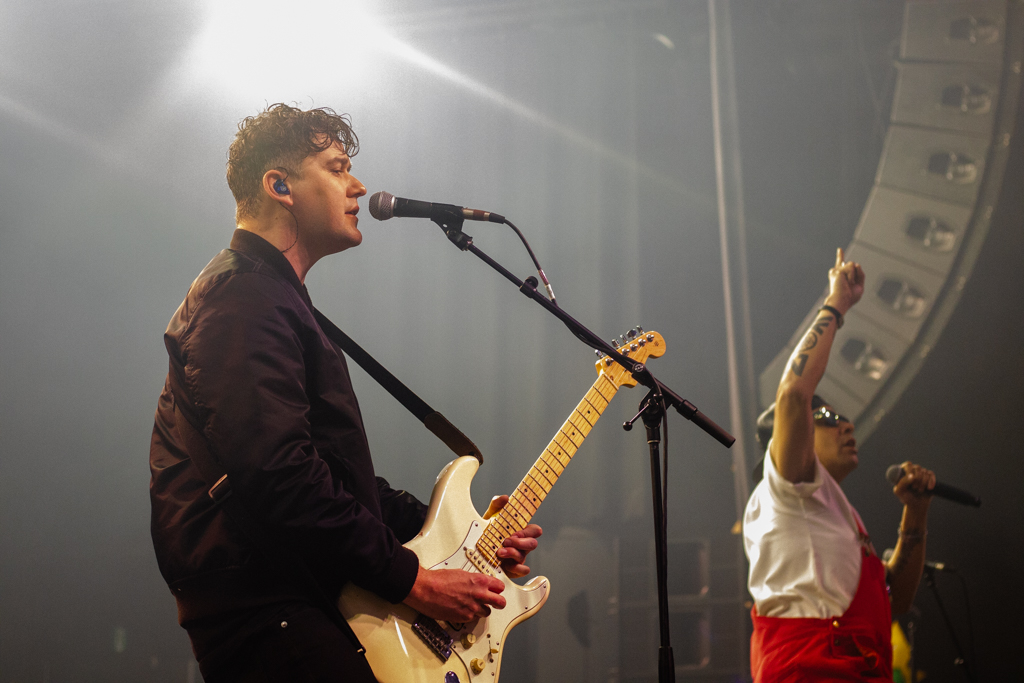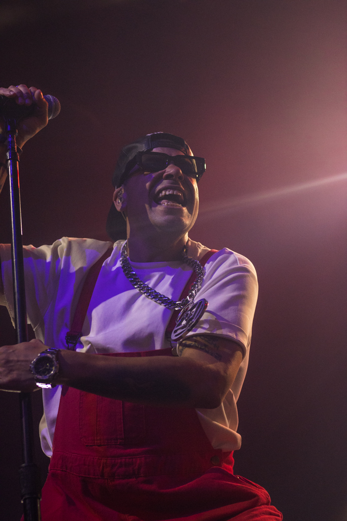 The holiday spectacular didn’t stop there, Marty the drummer shared pizza’s courtesy of Pizza Nova with the crowd while the iconic jingle plays in the background. The show also the saw the reunion of previous band members and long-time friends, Dave aka “Diggy” on the turntables and backing vocalist, rapper and hype man, Kyle aka “Kap”. Warming up the crowd on those cold winter nights was up and coming alternative/rap artist Sunsetto. Originally from Nova Scotia, Sunsetto, now Toronto based, he owns the stage with such fun energy with a healthy mix of emotionally lyrics mixed in with those catchy beats. If you’re a fan of Joji, The Kid Laori and blackbear – then I highly recommend Sunsetto. And on the second night of Christmas, I mean Wintour, fans saw the Toronto collab of the century featuring Juno Award Winning band and fellow east end darlings, The Beaches taking the stage with DWW for a remixed performance of their smash hit “Blame My Ex”.