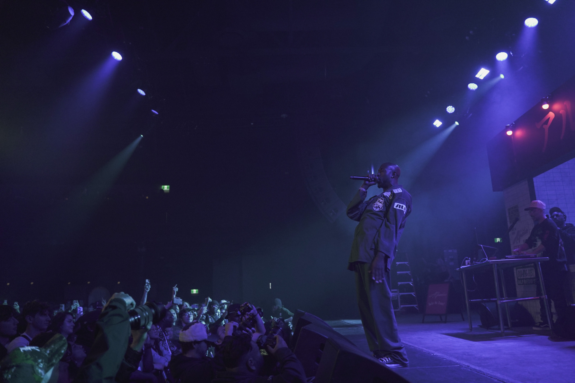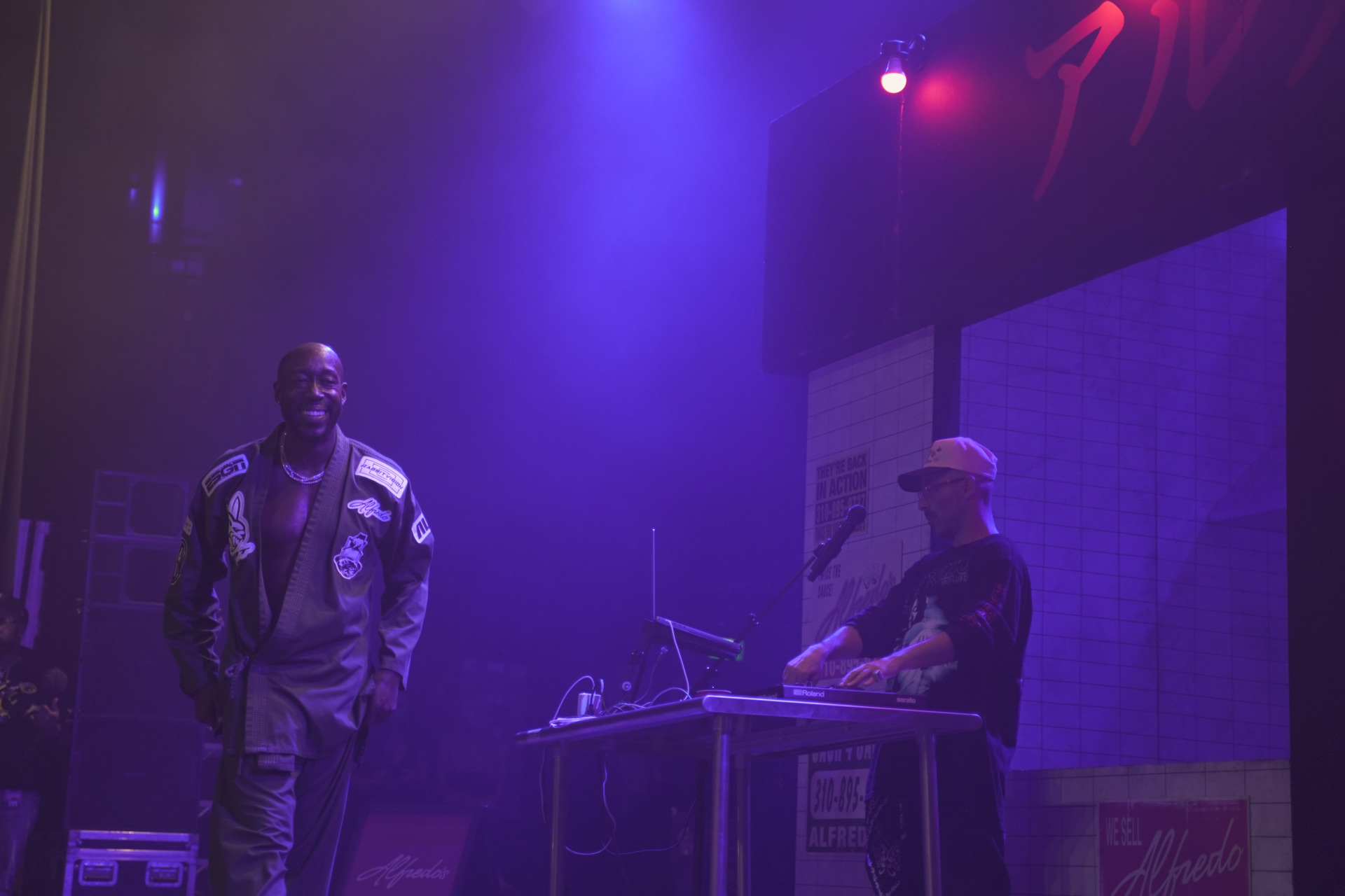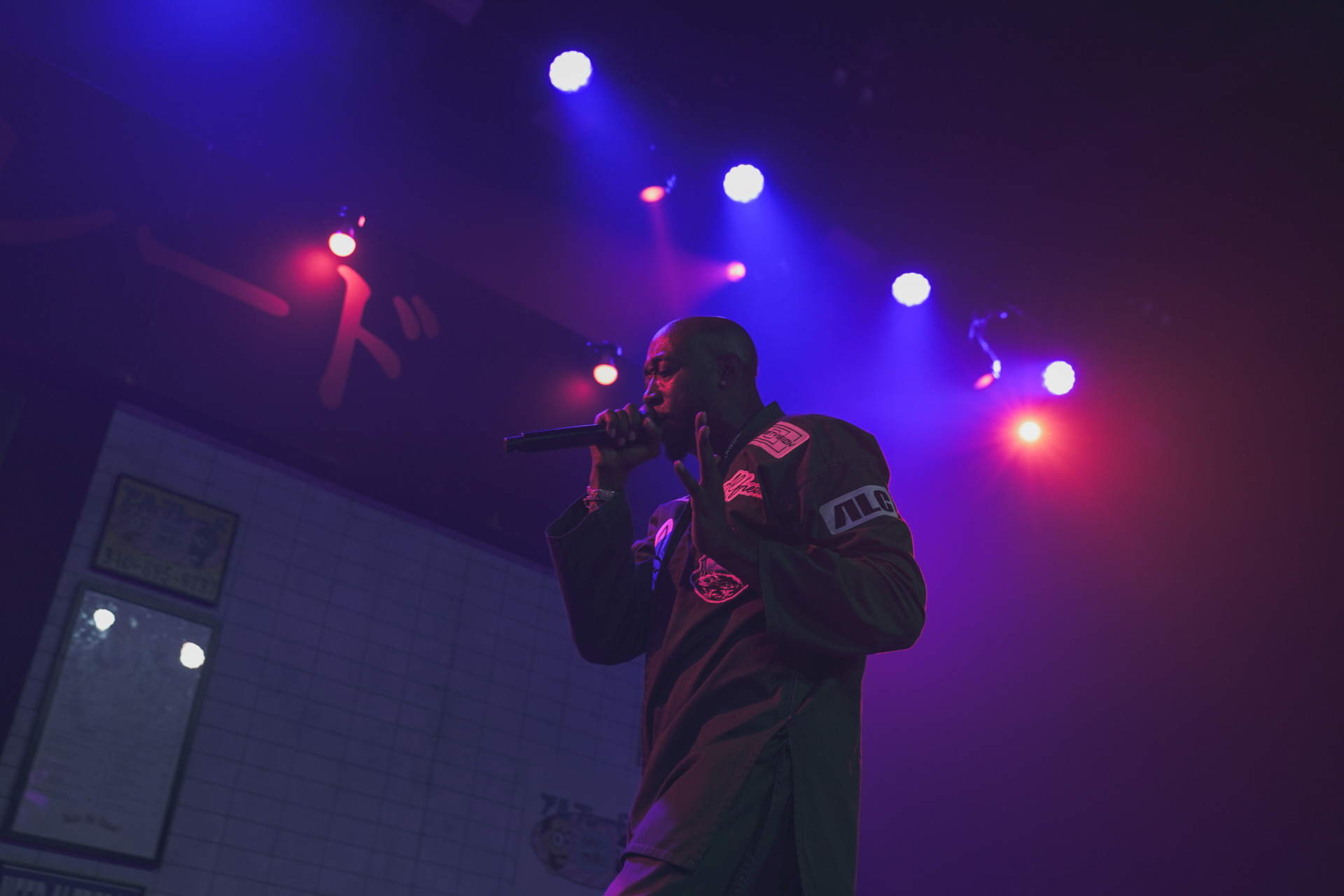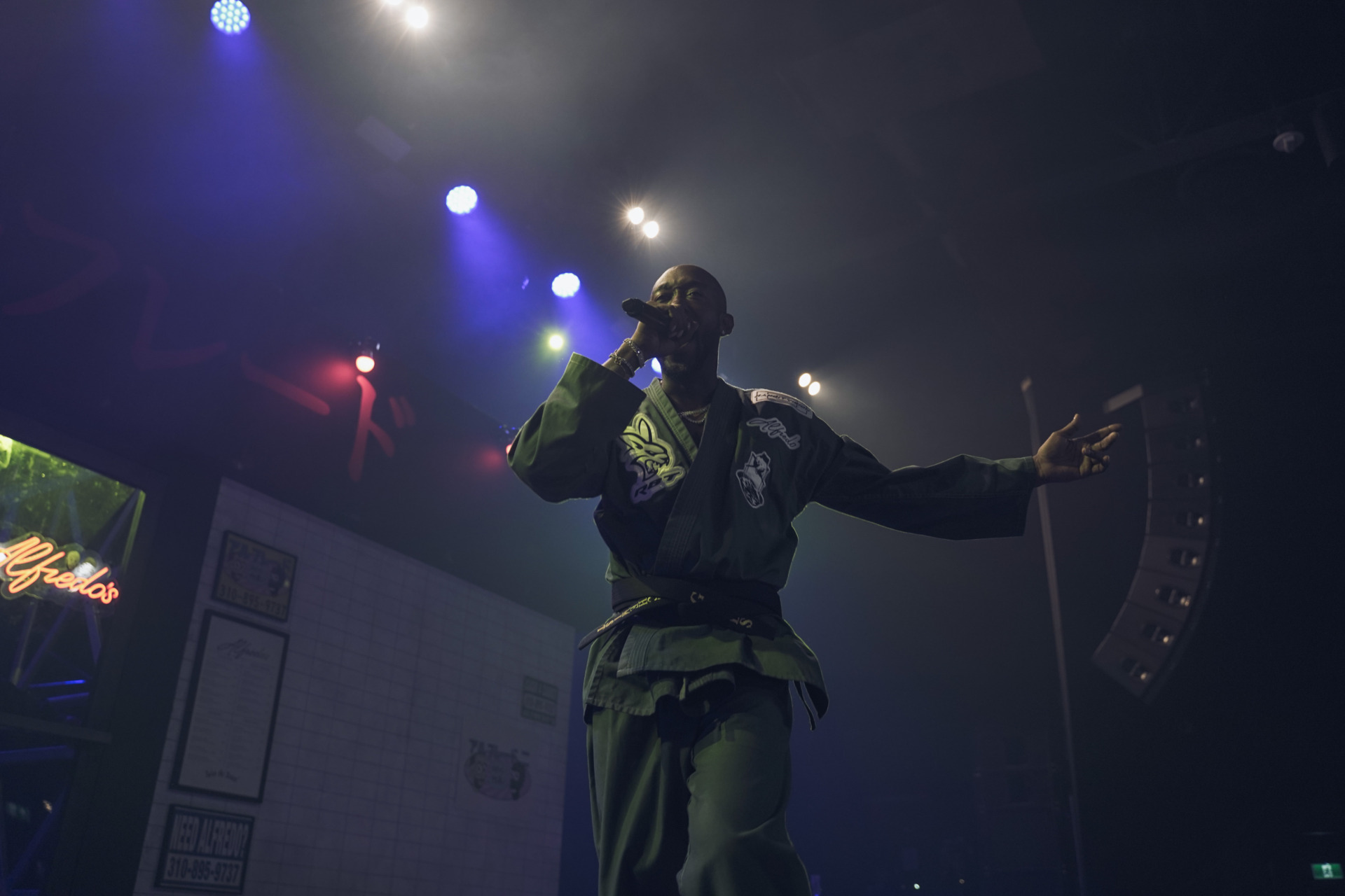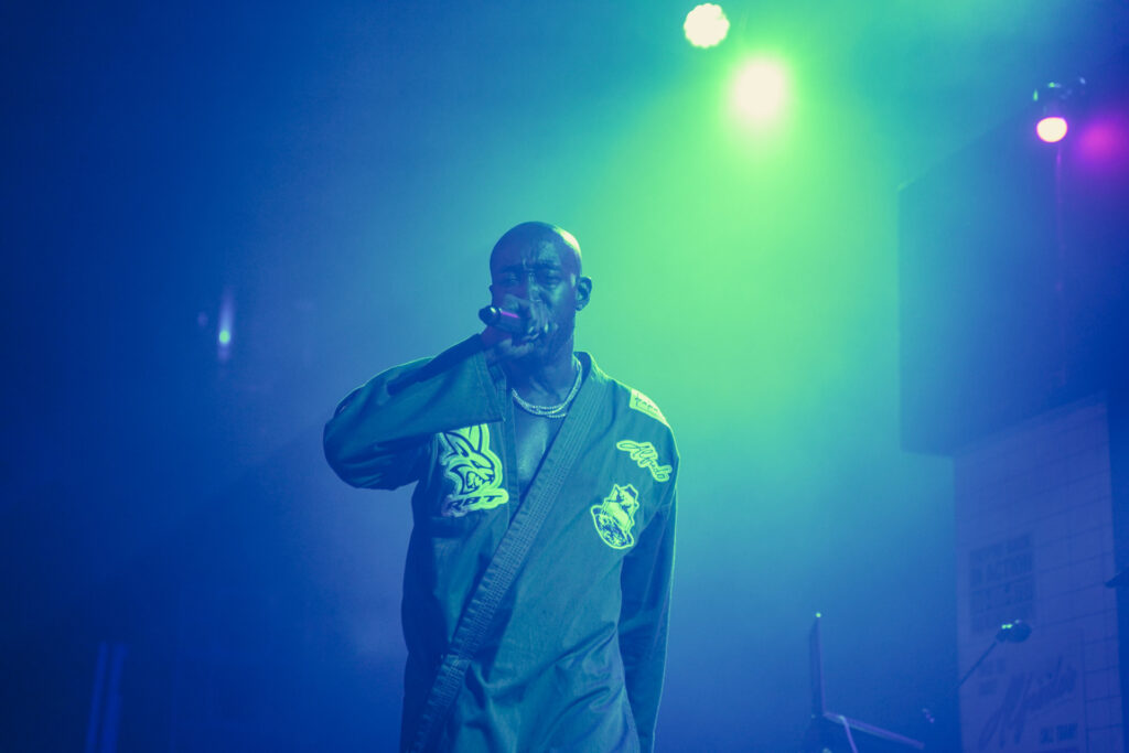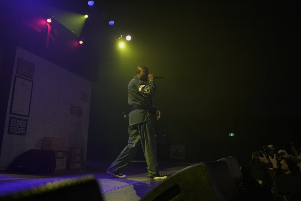 The next and final supporting artist on the night was Mavi out of North Carolina. Representing Charlotte, Mavi is making his name known in rap music by dropping some big tunes and frequently works with the likes of Earl Sweatshirt and of course The Alchemist. His soulful and heavily lyrical style makes for a prefect combination with production from The Alchemist and this tour. Mavi’s latest album titled Shadowbox is out now on all streaming platforms so make sure to check it out asap as we highly recommend it. When it came time for the main event of the night at History, The Alchemist would make his was out of the store front door that now had the neon “Alfredo’s” sign turned on foreshadowing the music the audience was about to be serenaded with. Next Freddie Gibbs would hit the stage running, sporting his custom Karate gi that had multiple patches stitched on including the official tour logo on the back, “ALC” on the side plus the album name “Alfredo” as well as others. It is obvious that Freddie Gibbs is fond of martial arts but on this night, he also advised the crowd that he was a fan of baseball and frequently asked the crowd for updates on the the Toronto Blue Jays game who were playing that night against the Seattle Mariners in game 6 of the ALCS. Later on, the rapper asked the crowd if they wanted them to just perform tracks from the album Alfredo 2 or the first Alfredo record as well which everyone happily cheered for. The night’s set list consisted of a steady mix of both Alfredo records as just mentioned, with some notables being “1985”, “1995” and “Mar-a-Lago”.