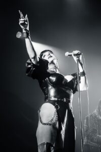 Earlier this week, Montreal had the pleasure of hosting industrial metal band HEALTH and dark synth artist Carpenter Brut for the CONFLICT:LEATHER tour at MTelus. Opening was electronic duo Desire setting the tone of the night. While they are currently based in California, the members’ hometown is Montreal and vocalist Megan Louise expressed her joy at performing “where it all started”. Louise commanded the stage with elegance, and smoothly danced her way through songs off of their newest album Games People Play. Sprinkled throughout were fun choreographed moments with producer Johnny Jewel and props incorporated into the performance with a flourish; notably holding a skull tha brought to mind imagery of Hamlet. With a final flourish and a rose tossed into the crowd, Desire left a strong impact.