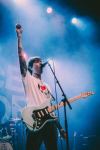 Much-anticipated, Joyce Manor took the stage to a haze of light fog, their name glowing behind them as the crowd’s excitement peaked. There was a noticeable sense of relief and positivity in the room, with fans clearly happy to see the band back and in good health after the postponed date. That energy was immediately reciprocated as Joyce Manor came out swinging, diving into tracks like “Falling in Love Again” and “Heart Tattoo” as the floor danced and grooved along. Having been a staple in the punk and alternative scene since 2008, their connection with the audience was undeniable. Every lyric was shouted back, every transition met with movement, and for those near the front, it was a constant balancing act of dodging flying Converse and platform boots as crowd surfers poured over the barricade. The band powered through an overall 24-song set, maintaining momentum throughout as fans danced, sang, and took in every moment. Just when it seemed like the night had reached its peak, the crowd demanded more, and Joyce Manor delivered. Letting fans call the shots with a request, “Stairs” kicked off the encore before closing things out with “Chumped”, “Well, Whatever It Was” and “Five Beer Plan” ending the night on a high that felt both chaotic and cathartic.