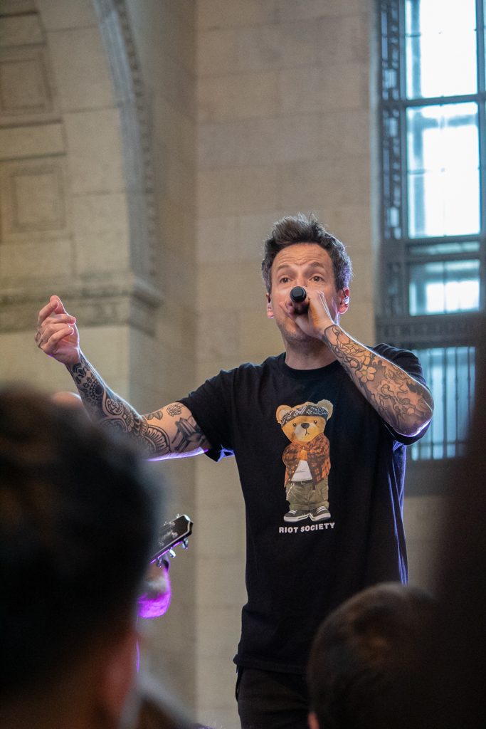 Sometimes the best things in life are free, or the simple things are rather. Throughout the morning of August the 12th, Simple Plan took to their Instagram to tease a free performance at Toronto’s Union Station ahead of their first night on tour with the pop-punk princess herself Avril Lavigne. By 2pm the countdown was set “Pop Up Show @ Union for 5pm” and I like many others flocked to Union Station as quickly as we could. It has been years since I’ve seen Simple Plan perform live so there was no way I was passing up on this opportunity. Members Pierre Bouvier, Jeff Stinco and Sébastien Lefebvre took the stage and performed a few their biggest hits like “I’m Just a Kid”, “Welcome to My Life”, “Jet Lag” and “Perfect” acoustically. Although there was an eager audience member who requested they sing the Scooby Doo theme song – if you know, you know.