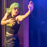 Known for an aggressive hardcore sound, Scowl, originally from Santa Cruz, brought a poppy punch to Portland, Oregon’s Hawthorne Theatre last weekend, presenting new songs from their sophomore album Are We All Angels. The album, which dropped in early April, was a controversial release – especially online, where die hard hardcore fans accused the band of shifting their sound too much to appeal to the masses. And while it’s true Scowl’s sound has more bubblegum charm than their first release, they still managed to pack a sour kick opening with “Opening Night”. Lead singer Kat Moss captured the stage, switching from vicious growls to sonically smooth melodies, like a toxic wasteland version of Snow White.