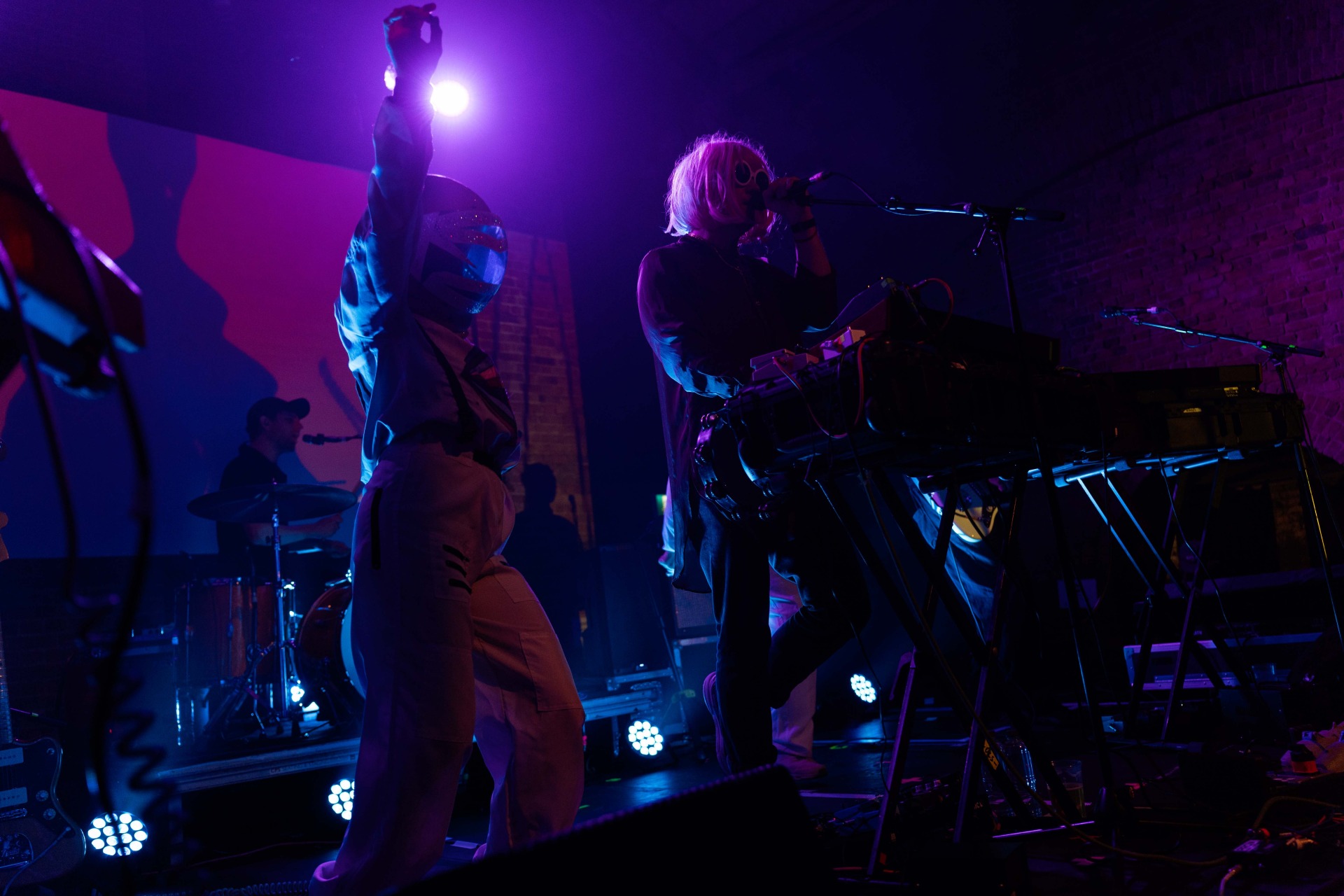 American indie rock band STRFKR (pronounced “Starfucker”) took to the Village Underground stage in London, England on Monday evening for the first date of their 2024 UK tour. Delayed by a tour bus breakdown, fans were left waiting in the autumnal air for longer than expected as doors opened 45 minutes late to allow the band time to soundcheck. STRFKR pushed ahead regardless and delivered a high energy show that delighted the London fan base. They would perform tracks from across their discography including their latest release Parallel Realms. The show kicked off in absurdist fashion with front man Joshua Hodges appearing on stage in a pink wig and oversized sunglasses whilst flanked by a dancing spacemen who would return for the finale of the show and accomplish an incredible feat of doing the splits whilst crowd surfing.