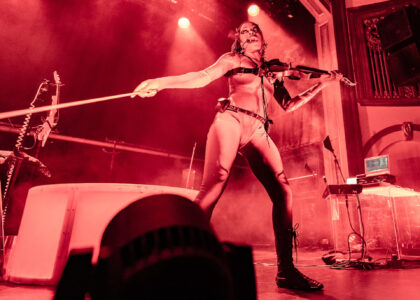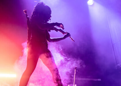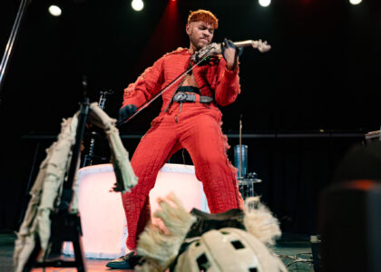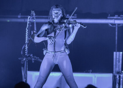 On Valentine’s Day, Sudan Archives delivered a sold-out performance in support of her latest album, “The BPM”. The performance showcased the full range of Sudan Archive’s remarkable artistry and genre-pushing abilities. The evening opened with fellow violinist Cain Culto, whose Latin R&B pulsating pop provided the perfect atmospheric warm-up. Along with his electric vocals, he commanded attention with his bluegrass talents, using a handmade violin sculpted to resemble something like a decaying bone fossil. This was complemented by a series of wild costume changes, including a crotch-less cowboy outfit, giant skeleton claw, and a fierce tribal hockey mask. Sudan Archives started her set off with a costumed persona of her own, the cyborg like “Gadget Girl” as featured on the cover of her new album. Her spooky wide-eyed contact lenses and precise robotic movements interacted with stage lights, controlling the electronic symphony around her as she performed a completely solo set dancing between stations of various synthesizers, drum machine pads and her signature electric violin. Her music ranged from the stringed R&B of “She’s Got Pain” to house-thumping anthems like “My Type” and the digital chiptune noise of “A Computer Love”. Audience participation was high with call and response lyrics, synchronized hand claps and even volunteers from the audience to dance on stage.