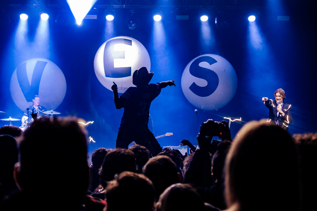Notable songs to check out: “The Price of Smokes”, “Stinker”, “Do What I Want” and “Identity Theft”. Before their sat even began, a member of their team walked out on stage with a balloon banner dawning the band’s name on it. A fun little nod to the gigantic inflated letters for The Hives’ set up.