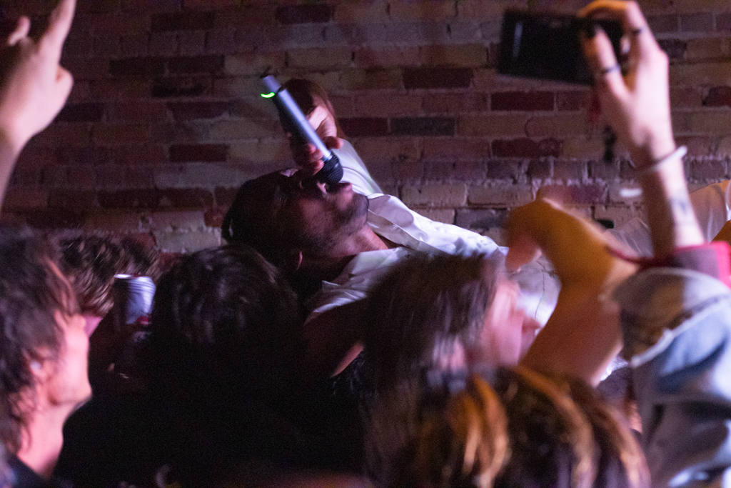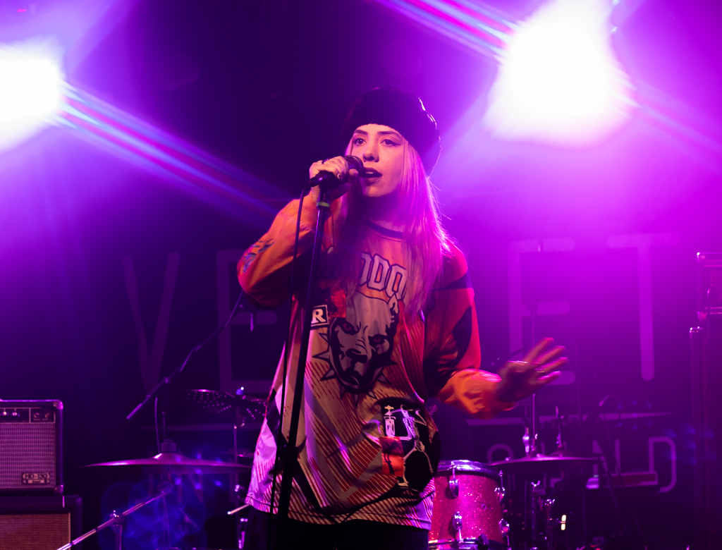 The energy was contagious as the four piece dawned the stage in their signature white one-piece Dickies jumpsuits, playing the new album in full along with fan favourites in their discography. You never know what is going to happen at an OBGM concert, but how could I describe it as anything else other than beautiful punk rock chaos. Between a fan coming on stage to do push ups, as well as the lead singer of fellow Toronto rock band Burner’s Deshaun Molloy (who we have covered in the past) playing with his Tech Deck alongside OBGMs guitarist, Simon Outhit and a fan crowd surfing on his belly – who knows what is going to happen? Not to mention lead singer, Denz, jumping into the crowd multiple times and even crowd surfing with a basketball held tightly to his chest.