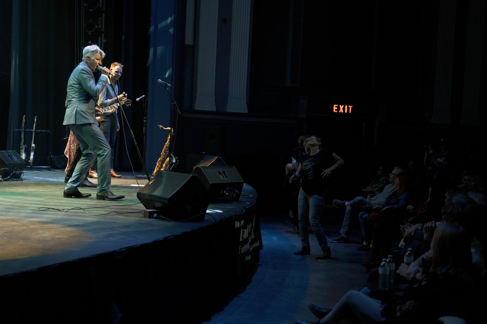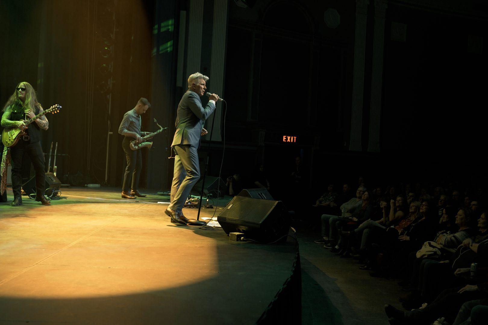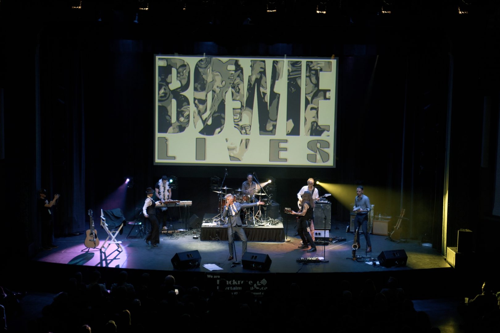 Having grown up in the 1990s I would say that my generation missed the prime years of David Bowie but one thing that was clearly still present in rock music at that time was the influence of David Bowie on the new wave of alternative and industrial rock bands that were on the rise. Starting in the 1960s, David Bowie would persist and continue to musically re-invent him self with each passing decade by producing and collaborating with acts like Freddie Mercury, Nine Inch Nails and The Arcade Fire towards the latter half of his career. Going back to the night, The Bowie Lives Experience would hit the stage in front of a packed house at the Regent theater in downtown Oshawa on a Saturday in March. The historic but newly renovated theater was a buzz from the first minute that I walked in to the lobby and was met with the lines of people filing into the seating area. The stage looked great being detailed with a giant video projection screen as the backdrop and a David Bowie set chair on the left side of stage. A few opening acts hit the floor first making way for the entrance of Bowie him self being played by Michael Bell.