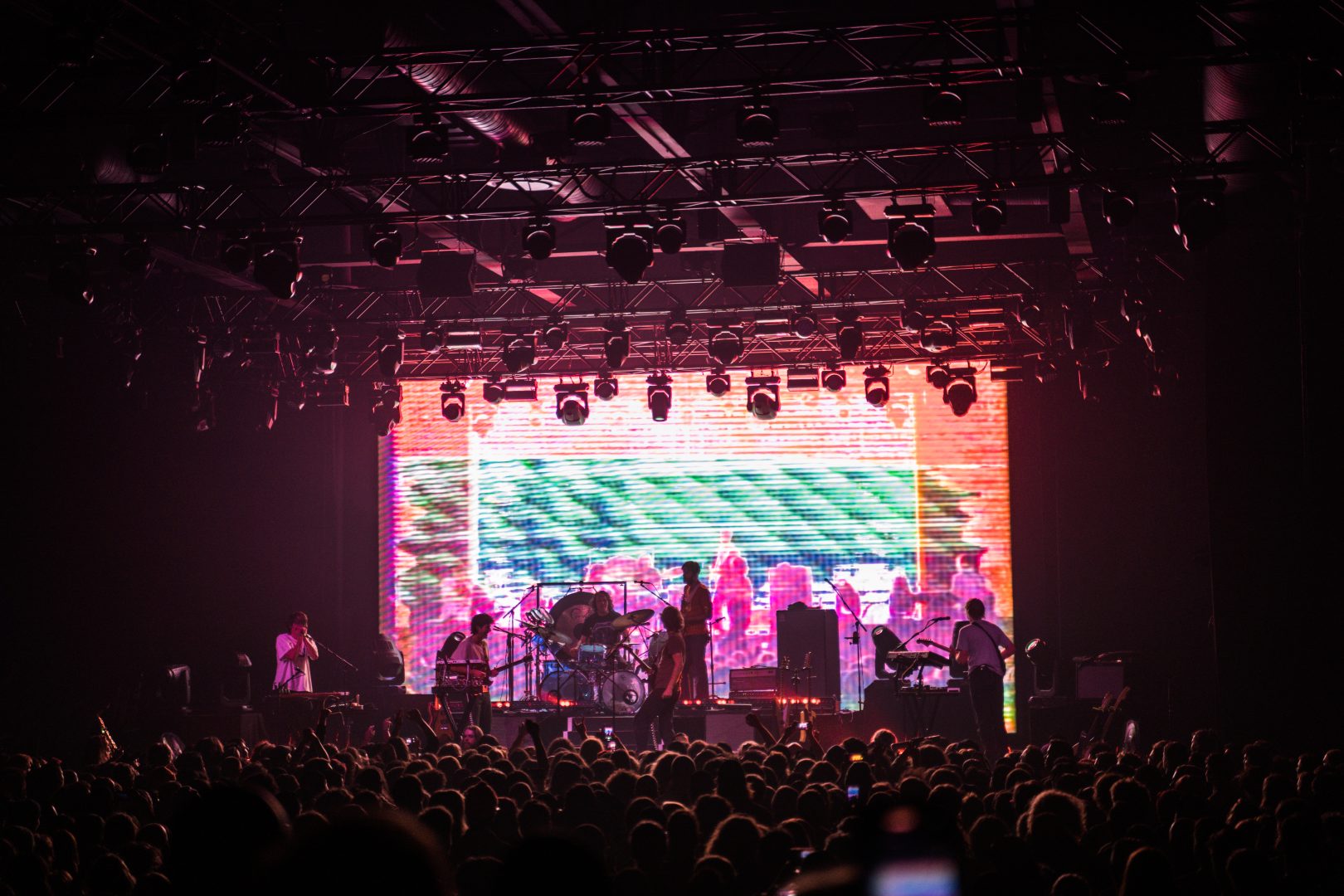 Australian psychedelic rock band King Gizzard & The Lizard Wizard took to the stage at History in Toronto on October the 18th. The concert was a rare Canadian appearance for the band as most of their shows on this North American tour have been in the United States. On this rainy October night the band would perform and play a full set of 15 songs a lot of which included a long “jam session” to finish off the tracks which is something that this group is known for. It’s surely something that the fans love about them and helps make their playing style unique. When it comes to their live events, King Gizzard isn’t just music as it they use visual stimulus with lighting and in Toronto they made use of History’s large HD video screen and played some cool video patterns for the backdrop which were always in sync with the music. Made for a very ‘trippy’ experience.